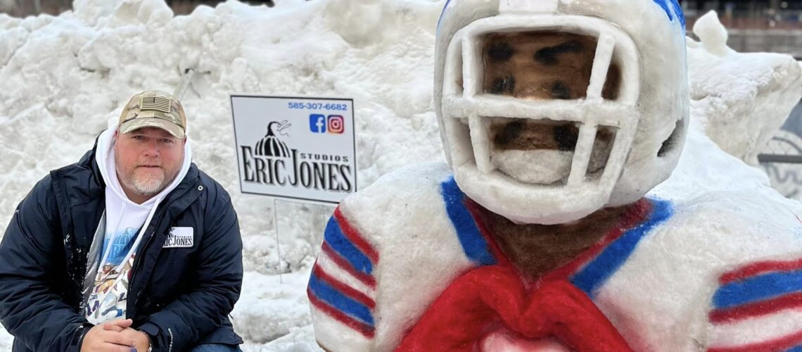 The epic snow sculpture was vandalized and is now being rebuilt by fan donations By Andrew Harris The next chapter in Eric Jones awarding winning career has been more than … Continue reading WNY Sculptor Eric Jones creates a Damar Hamlin tribute, overcomes vandals