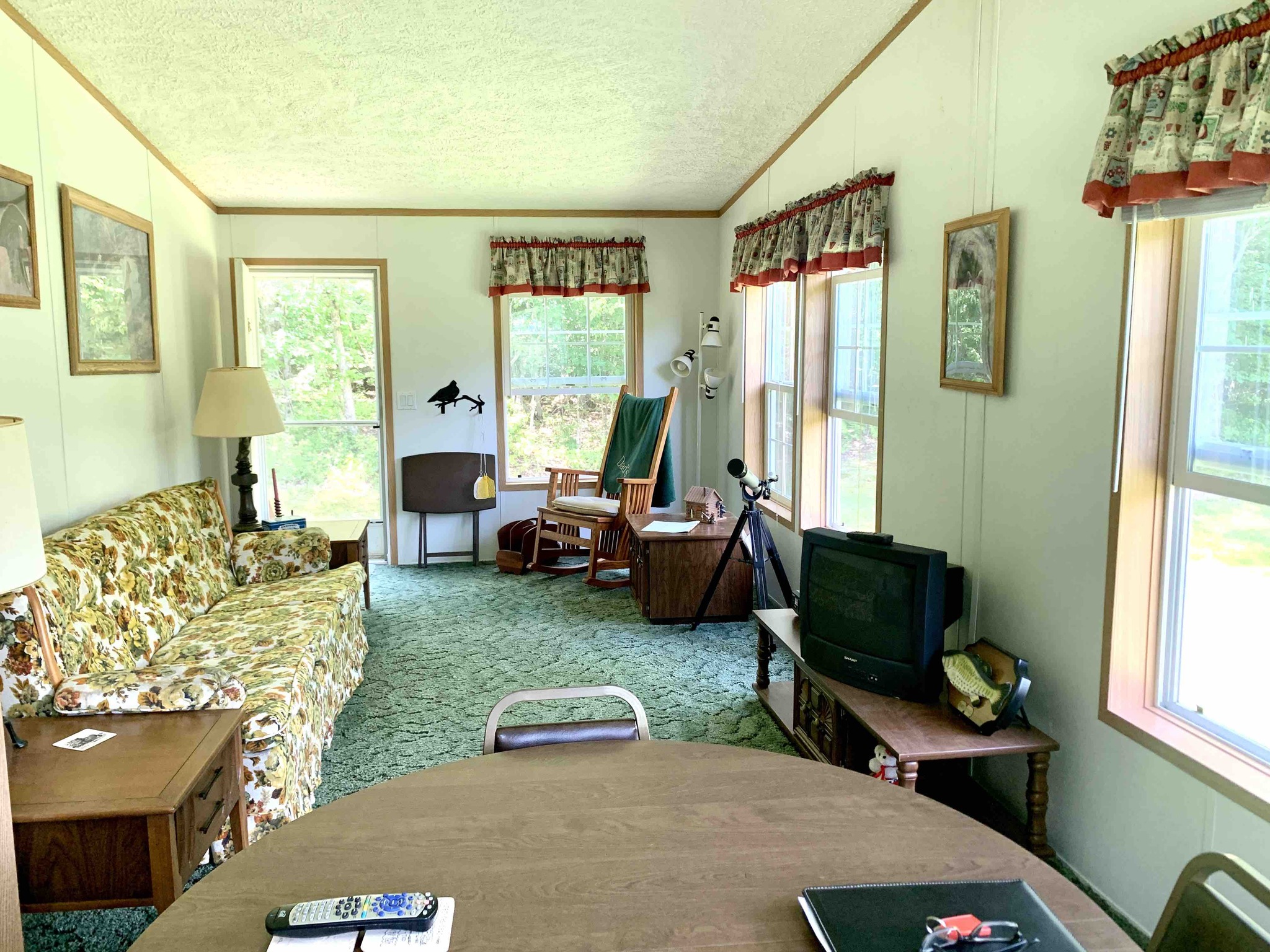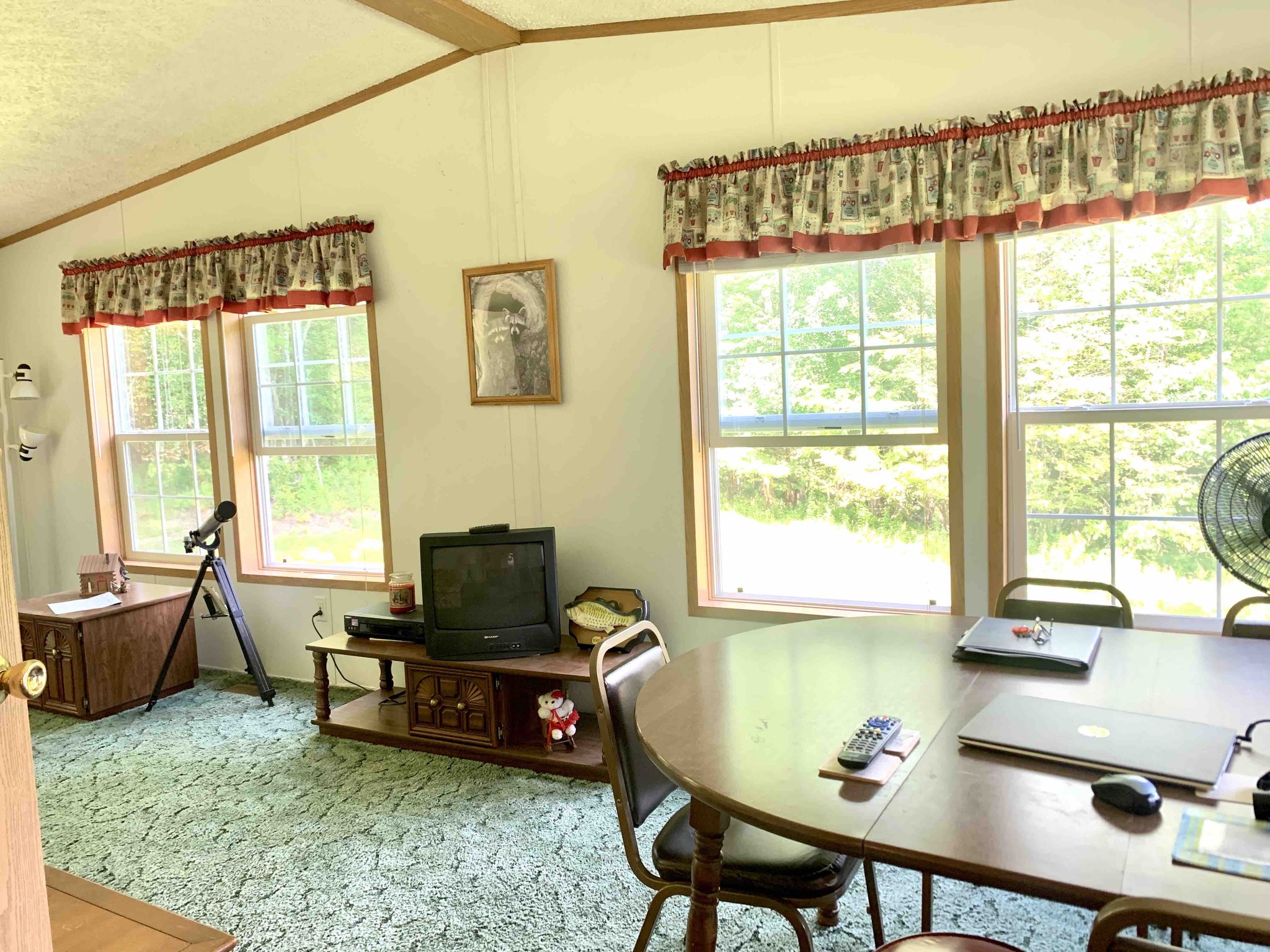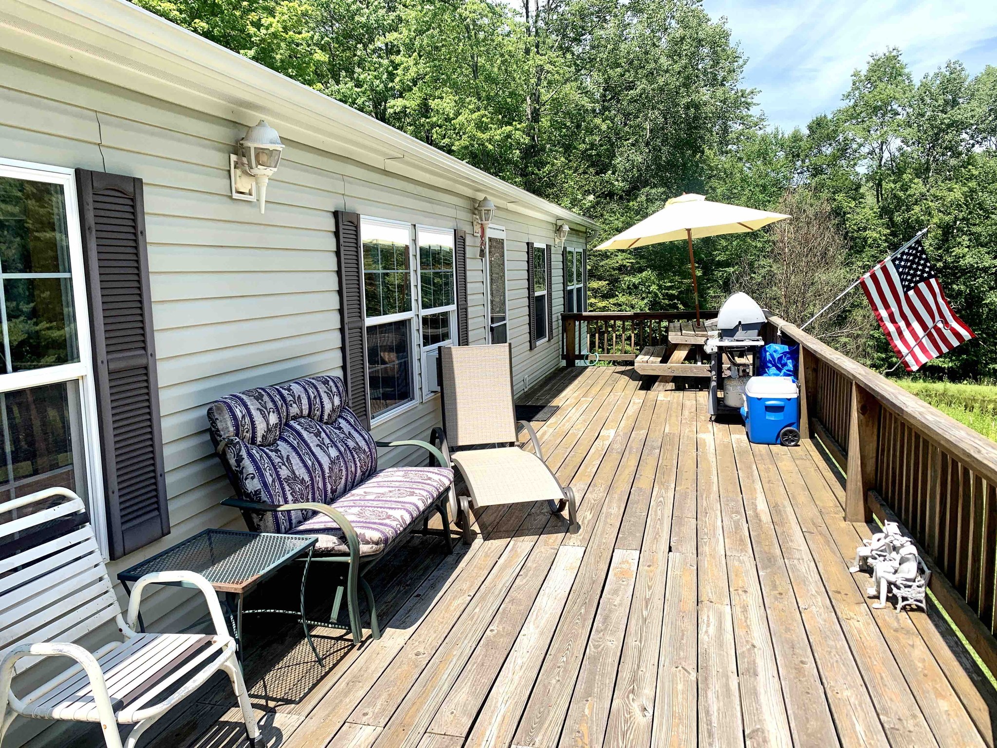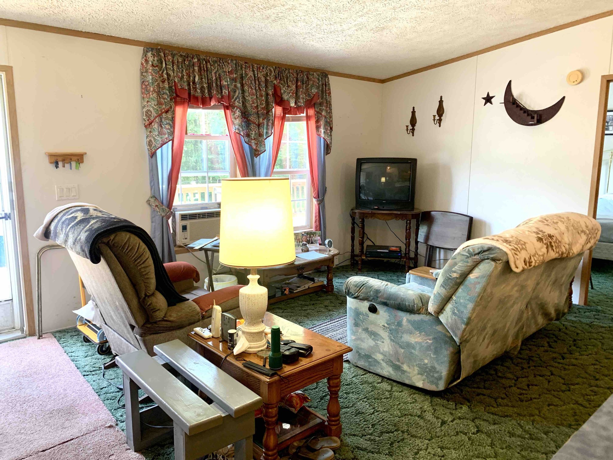 The double wide home has 2 bedrooms, 2 full bathrooms and overlooks a nice pond surrounded by trees for privacy. A beautiful deck runs the length of the house where you can sit and enjoy a cup of coffee and sunshine and watch the deer walk by. Inside you will find a master bedroom that has its own full bath and walk-in closet. The country-style kitchen with open concept to the living room gives this house plenty of space to entertain guests. There is a den that could be used as a third bedroom, and an additional large family room known as the nature room has large windows throughout inviting in plenty of sunshine and fresh air that overlooks the pond and forest.