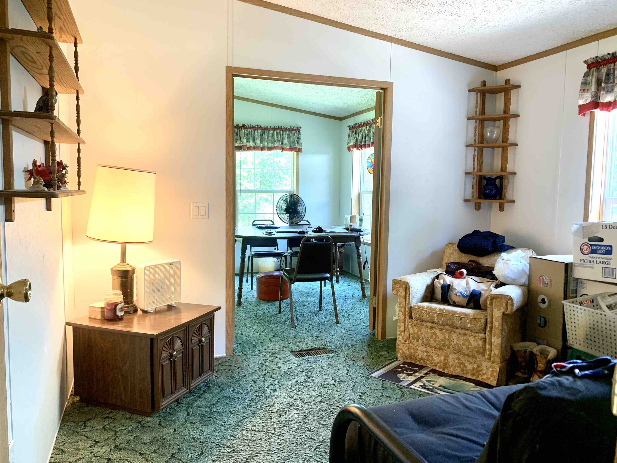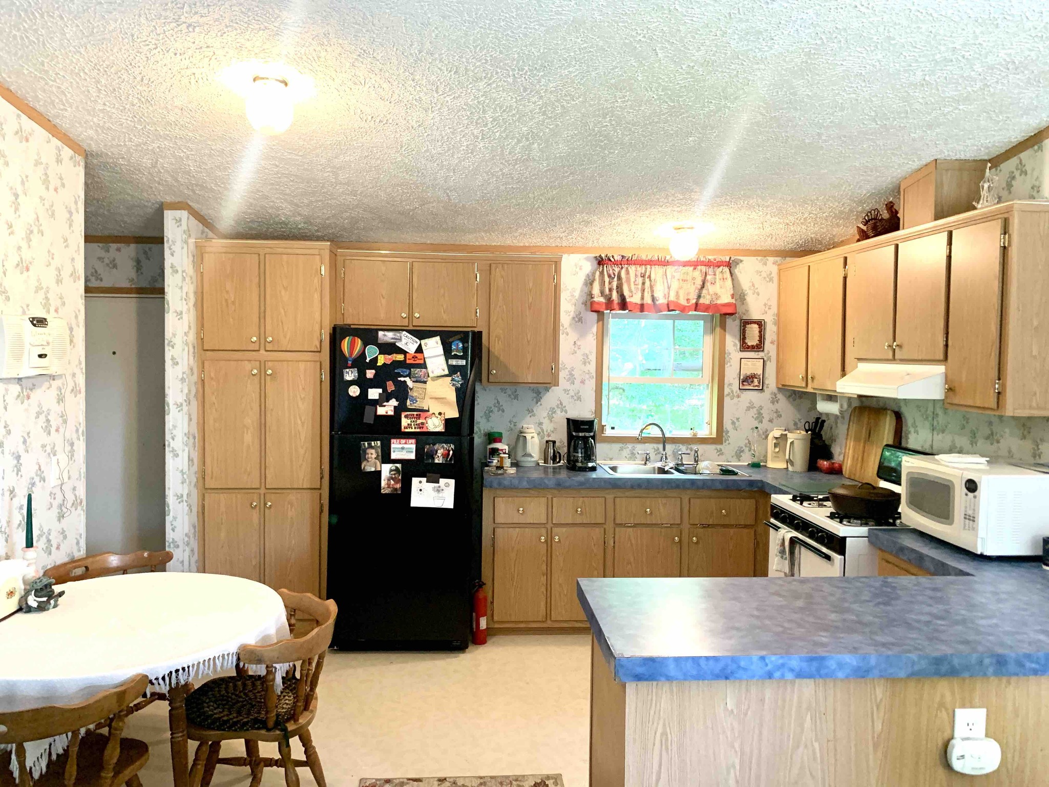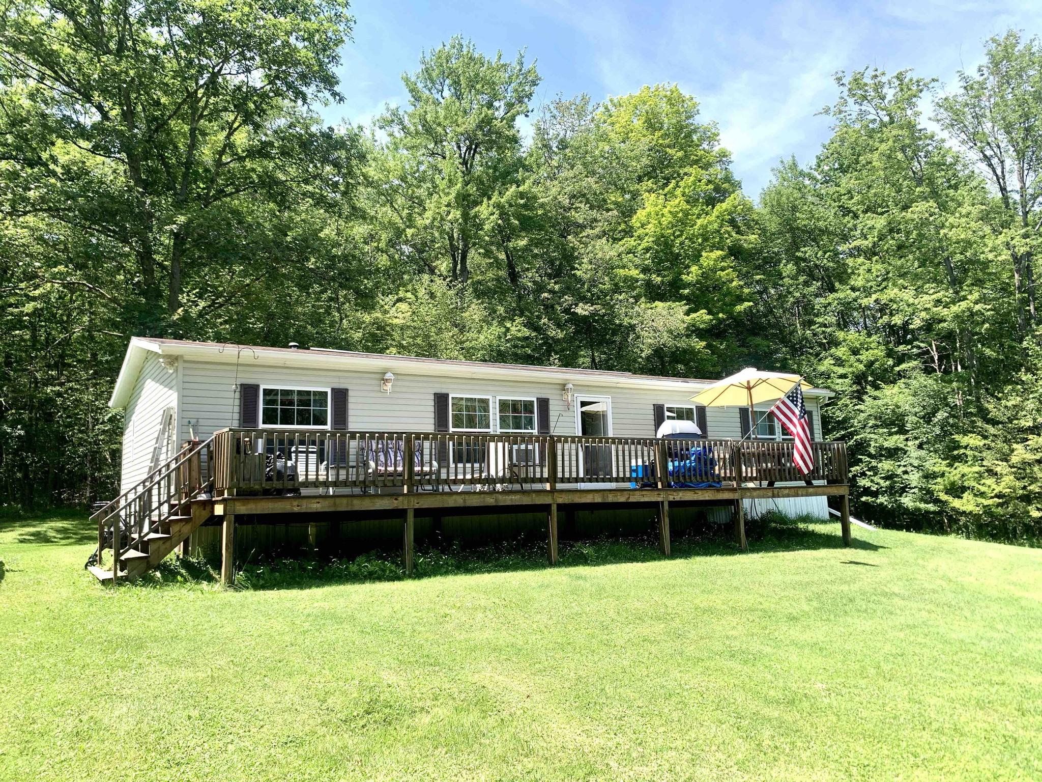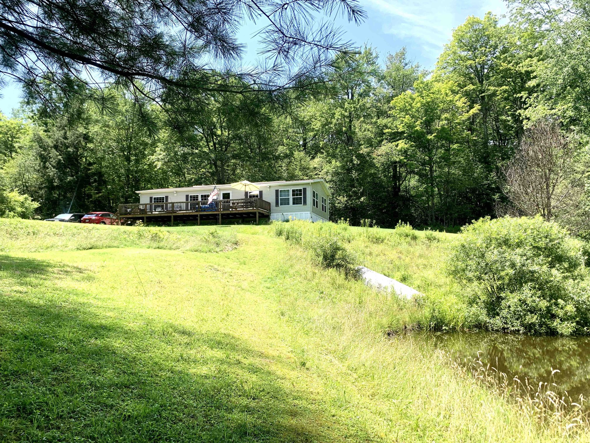 The double wide home has 2 bedrooms, 2 full bathrooms and overlooks a nice pond surrounded by trees for privacy. A beautiful deck runs the length of the house where you can sit and enjoy a cup of coffee and sunshine and watch the deer walk by. Inside you will find a master bedroom that has its own full bath and walk-in closet. The country-style kitchen with open concept to the living room gives this house plenty of space to entertain guests. There is a den that could be used as a third bedroom, and an additional large family room known as the nature room has large windows throughout inviting in plenty of sunshine and fresh air that overlooks the pond and forest.