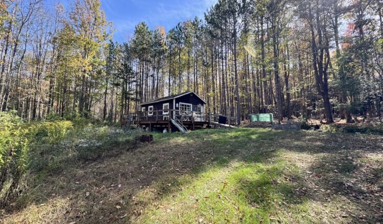 The wooded area features a well-maintained trail leading to a small off-grid hunting cabin that can be powered by a generator for electricity and propane for the cooking stove. There is a wood stove that provides heat. Electric and high-speed internet are available right at the road if you wish to connect in the future.