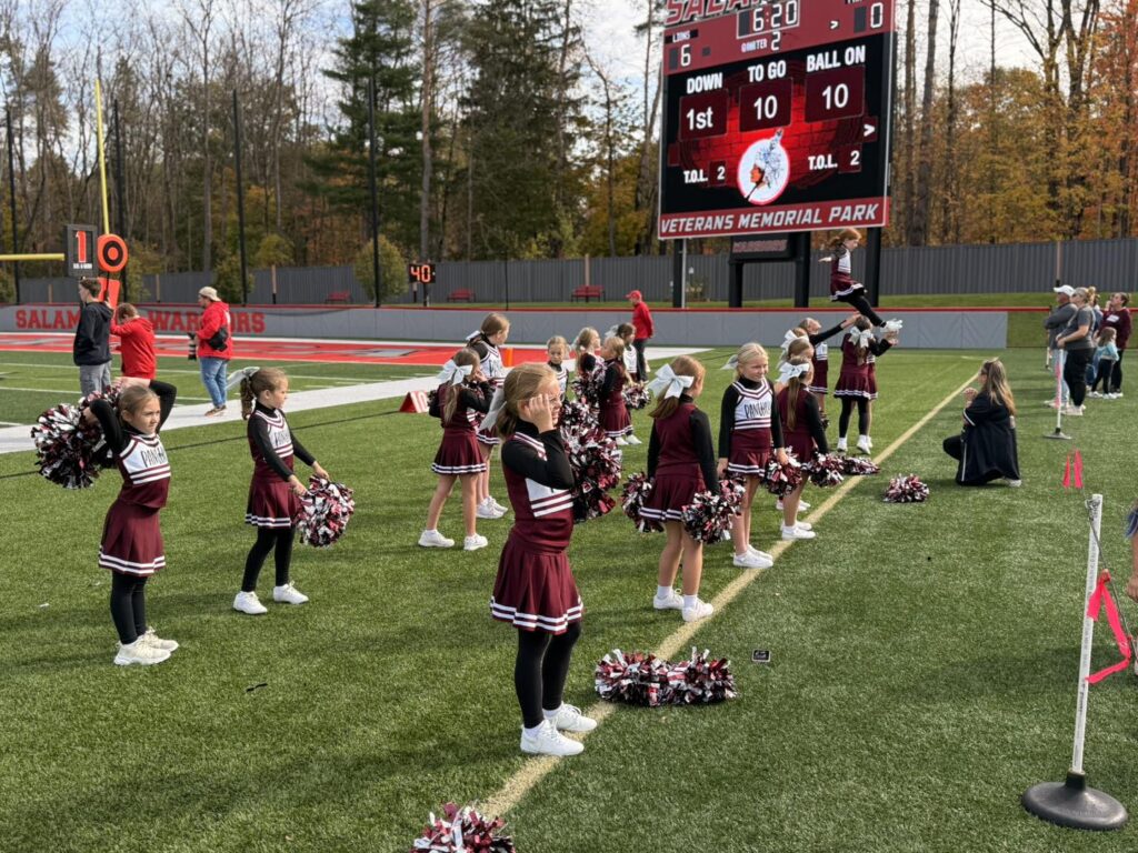 THE FOOTBALL COACHES said the cheerleaders were a big part of the championship win. On Saturday, several times coaches couldn’t find players who had to go in the game because they were cheering and yelling with the squad! The cheerleaders were coached by head coach Paige Bierman and assistant coach Bree Buentello. The cheer team is: Lydia Shutt, Lyla Hanchett, Eleanor Pensyl, Zurie Greenan, Brooklyn Snyder, Laney Witter, Briar Giesel, Emma White, Paisley Cole and Amiyah Hunt.