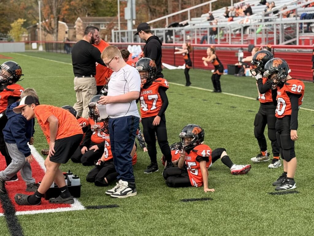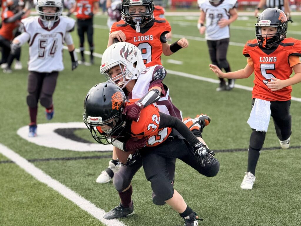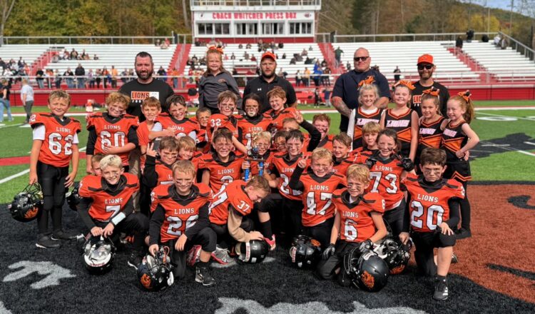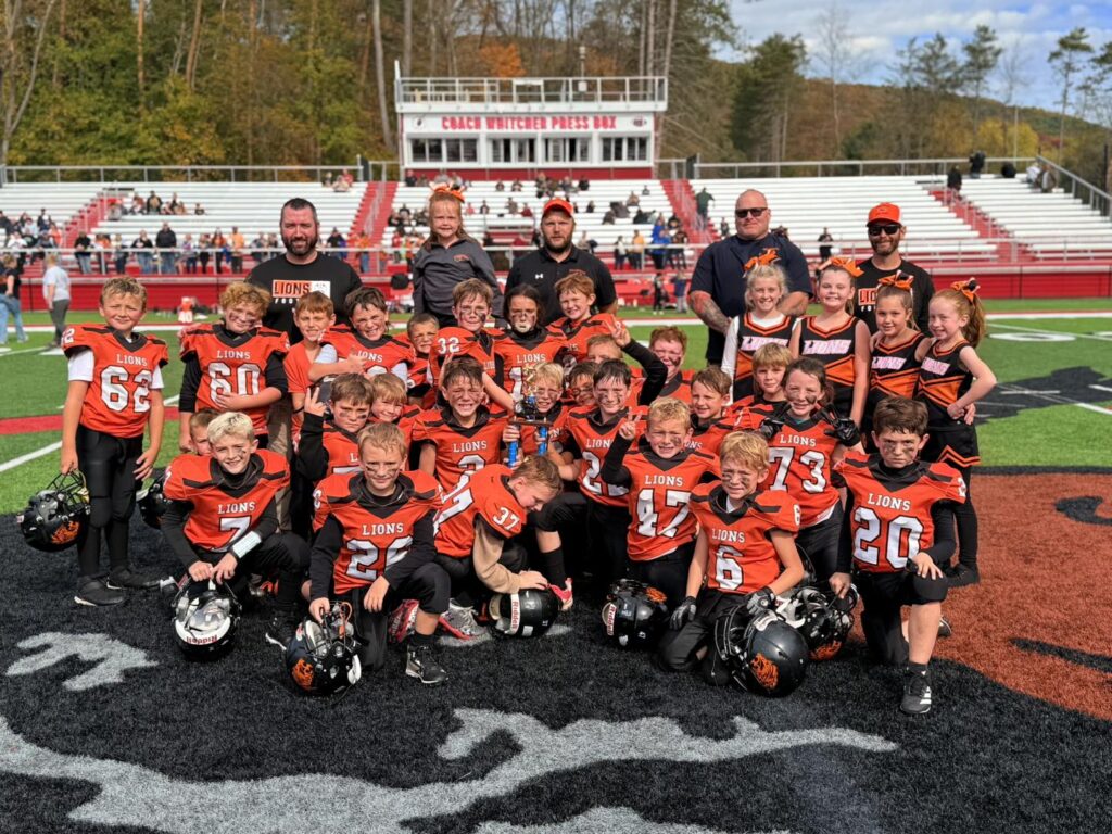 The league has a play rule and all Wellsville players got their plays in during the victory. After stopping Portville, the Lions had one second on the clock. The coaches sent out every player for the final play who will go up to the midgets next season. They kneeled for the win and the final snap of their career culminated in a championship win.