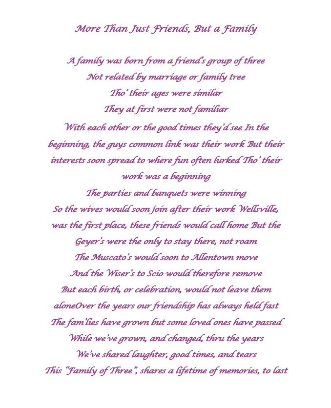 I will leave you now with another poem that again features the “Family of Three”, already shared a week or two ago, but as a slightly different version, and edited some. Once again I sign off with the invitation for you to reach out to me, as a few have done recently, if you have any questions, cares or concerns, or just want to establish a new friendship. Thank you, Charles Van Heck, and Bill Doerler for having invited me into your lives through these Wramblings.