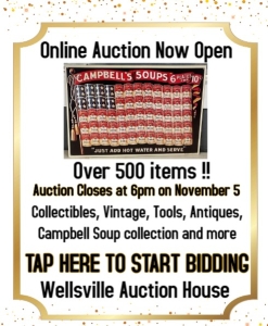 Happy Bidding! Online auction is now open from the Wellsville Auction House