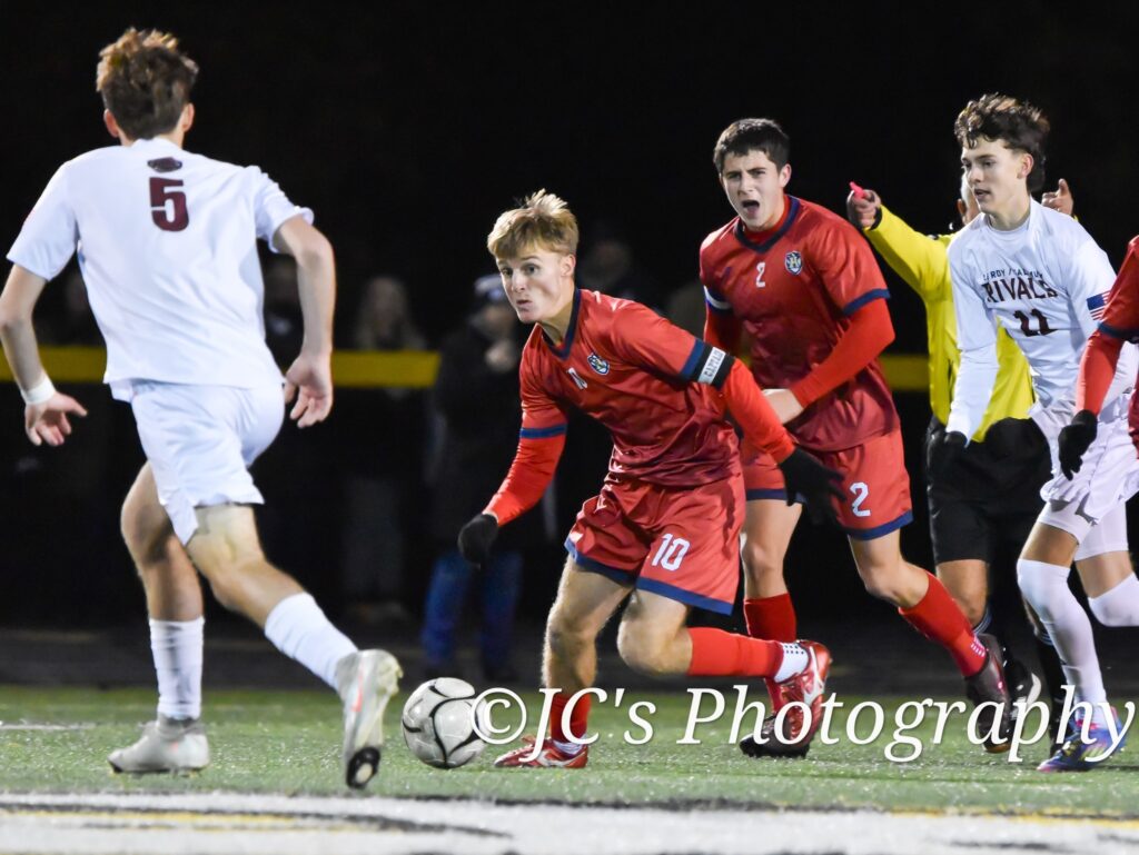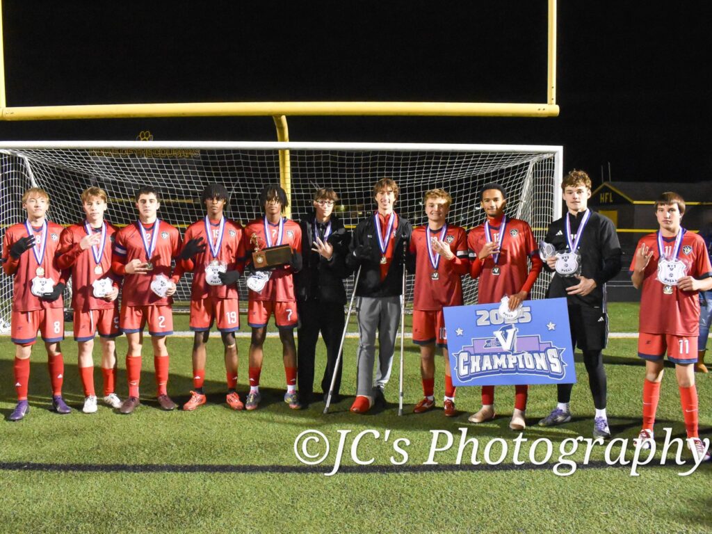 The win certainly wasn’t smooth sailing for the Red Raiders. “We came into this game without our speaking captain, Nick Gray, who suffered a fractured ankle in the (semifinal) Livonia game. We had to reshuffle players, and it worked,” reflected Tobin.
