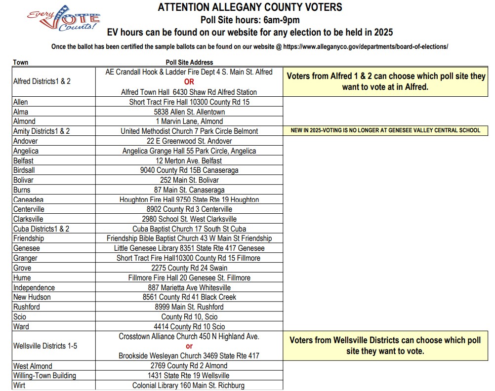 Allegany County will decide on the next slate of Legislators and only one district has a challenger to the dominate Republican party. Sarah Trumpp is on the ballot in District two, challenging the incumbent Legislators Healy, Hanchett, and Ricci. All other legislative districts are a forgone conclusion with three candidates for three open spots. This election cycle has seen almost no political campaiging, messaging, or debate of the many pressing matters that legislators must tackle over the next four years.