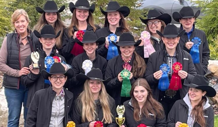 Western Equestrian team display their awards following a successful weekend of riding at Slippery Rock University