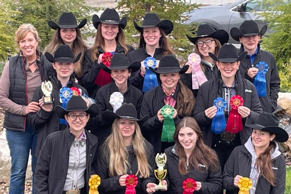 Western Equestrian team display their awards following a successful weekend of riding at Slippery Rock University