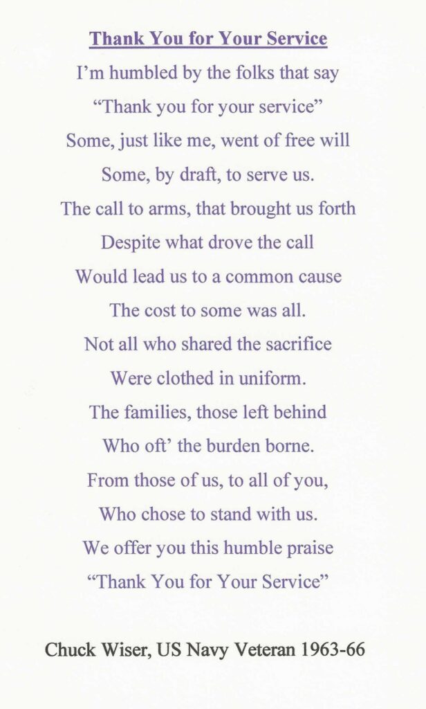 By Chuck Wiser, I write the words to share what my eyes see and my heart feels
