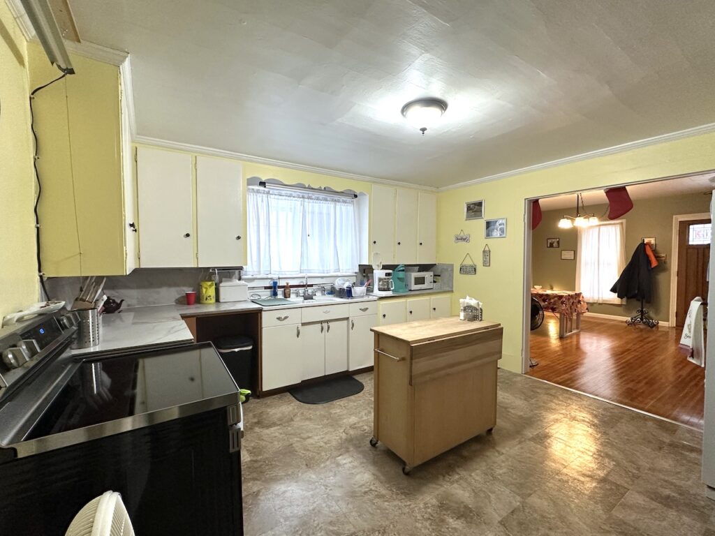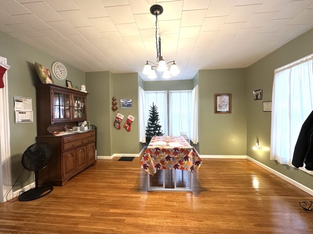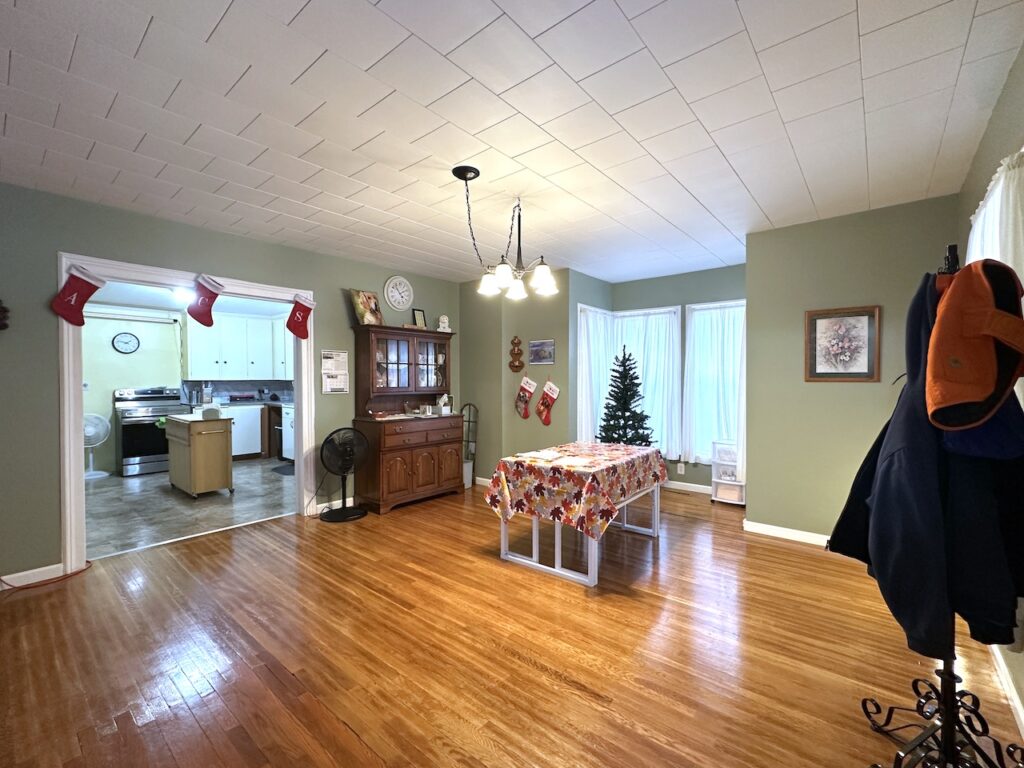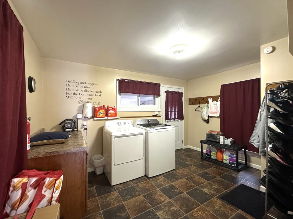 This home offers a wonderful blend of comfort, convenience, and scenic surroundings. Enter the home through the rear breezeway into a large mudroom-laundry area perfect for storing coats, boots, and everyday gear. Just off the breezeway, step out onto a relaxing patio, ideal for outdoor dining. The kitchen flows effortlessly into a comfortable dining area highlighted by a bay window which then opens to a warm and inviting living room perfect for family gatherings. A bedroom and a full bath complete the main level and provide convenient first-floor living.