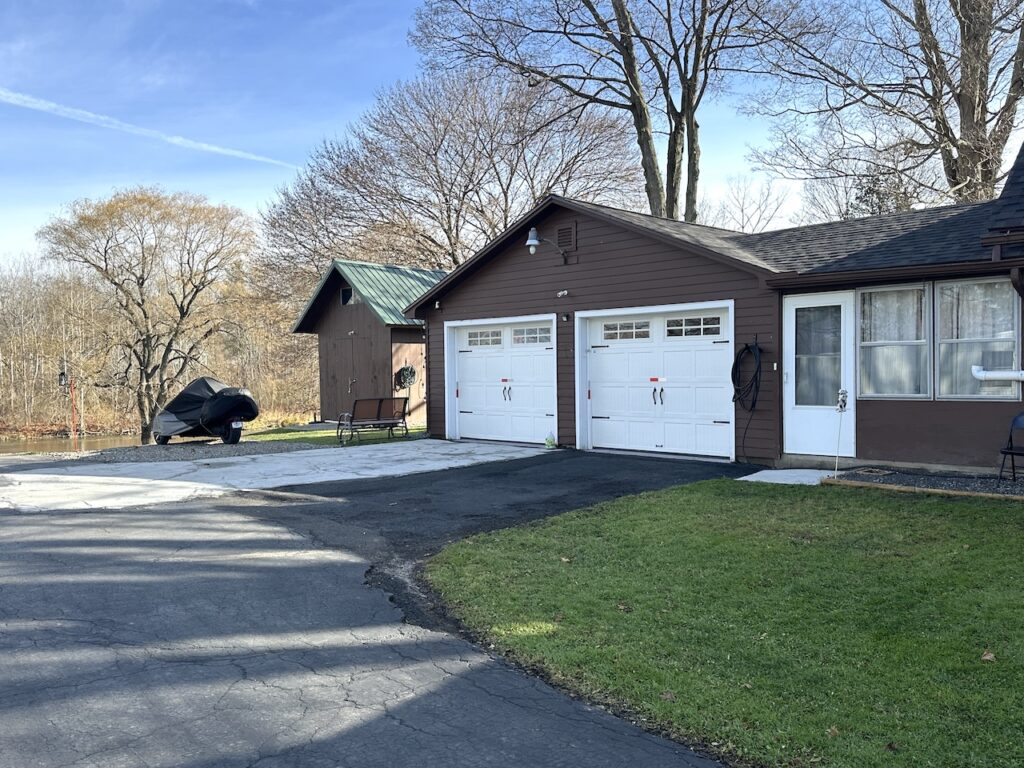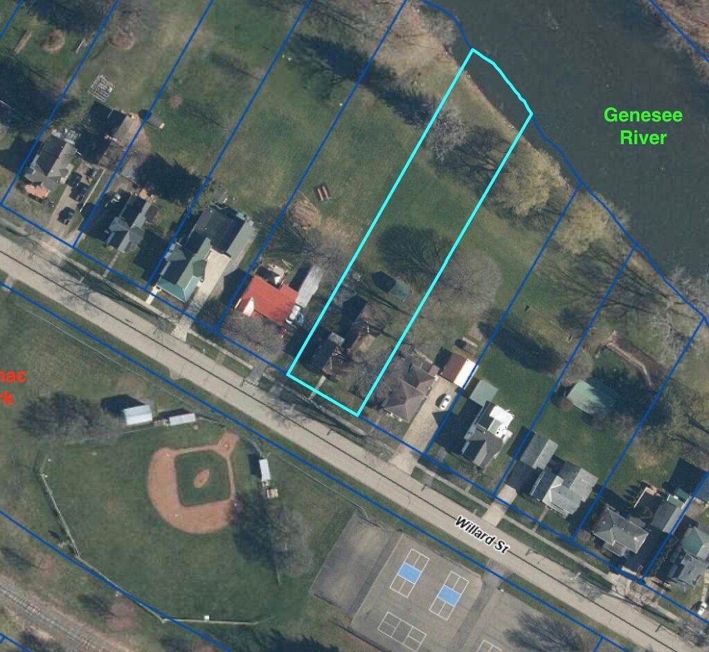 Outside, enjoy tranquil views of the Genesee River from your backyard, an ideal setting for bonfires, relaxation, and play. The property also includes a garden shed with a second-story playhouse for added charm. A blacktop driveway provides plenty of parking and leads to the attached 2-car garage.