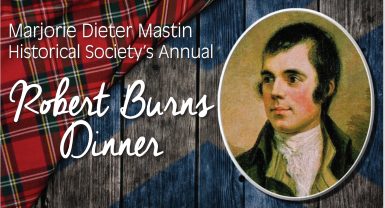The Marjory Dieter Mastin Historical Society is proud to announce its annual Robert Burns Dinner celebrating the life, poetry, and legacy of Scotland’s national bard, Robert Burns. The settlement of Burns was established from part of the Town of Ossian and was named in honor of the Scottish poet, who is widely regarded as the national poet of Scotland,