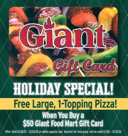 Buy a $50 gift at Giant, get a FREE large pizza