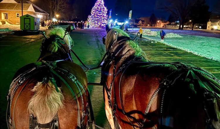 Santa, horse-drawn carriage rides, hot cocoa, and kids activities!!