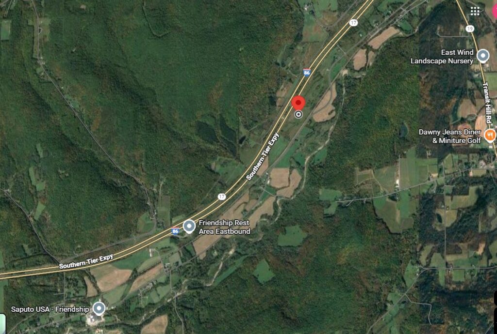 The facility is intended to replace current DPW facilities which have long reached the replacement stage. County owned property that is situated between I-86 and County Route 20 which runs paralell to the interstate. While the location is in the Town of Friendship, it lies very close to the I-86 and Route 19 intersection and the Quicklee’s Travel Plaza. Pictures below from Google Maps indicated the 6130 County Route 20 location: