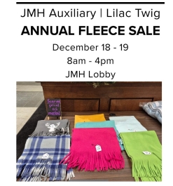 Wellsville, NY — The Jones Memorial Hospital (JMH) Auxiliary Lilac Twig will hold its Annual Fleece Sale on Wednesday and Thursday, December 18 and 19, from 8:00 a.m. to 4:00 p.m. in the JMH Lobby.
