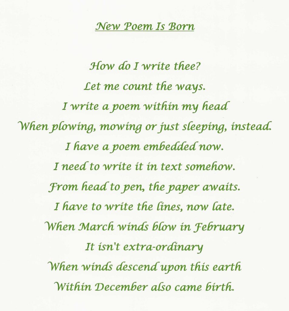 I leave you now with my latest poetic efforts. A poem is built in the heart and does not require “seep thinking,” but deep emotion and affection for the words that can be thought, written and shared with others. This poem was just meant as the beginning of a longer one, but I may keep it this way in its brevity, but soul sharing.
