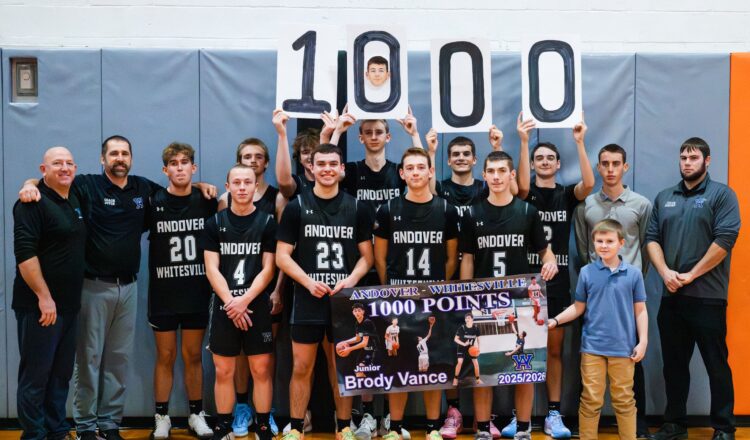 “I was so happy to see Brody get to 1,000 career points,” said Andover-Whitesville coach Jimmy Joyce. “He has busted his tail since he was in third grade.  Nobody more deserving than him and being only a Junior, he’s going to smash a lot of records at A-W.”