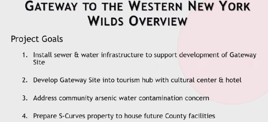Since 2023 the Allegany County effort, led by the man-of-many-hats Tim Boyde(currently serving in a Deputy County Administrator role,) has sought the services of a project management firm to start putting years of planning into action. They enlisted the Delta Development Group who made a lengthy appearance in Belmont this year to brief legislators on the progress. That started with a review of the project goals: