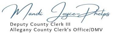 From the Allegany County Clerk’s Office,