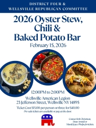 Wellsville, NY — The District Four & Wellsville Republican Committee will host a fundraiser on Sunday, February 15, 2026, featuring an Oyster Stew, Chili, and Baked Potato Bar.