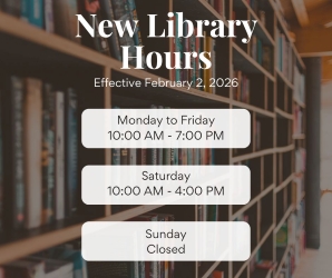 Beginning Monday, February 2, the David A. Howe Public Library will have new open hours. They will be open 10 a.m. until 7 p.m. Monday through Friday and 10 a.m. until 4 p.m. on Saturday. This represents a shift in the times the library is open but is not a reduction in total open hours. Closing earlier Monday through Thursday will make it possible for the library to remain open later on Friday and Saturday.