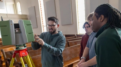 “They’ll do a lot of field work like this when they graduate,” commented DiRado. “A lot of times we have somewhat hypothetical projects in the architecture department, and this puts them with a real client and working under restrictions. This idea of coming out to an existing building to measure and document either for an addition or interior work is extremely common.”