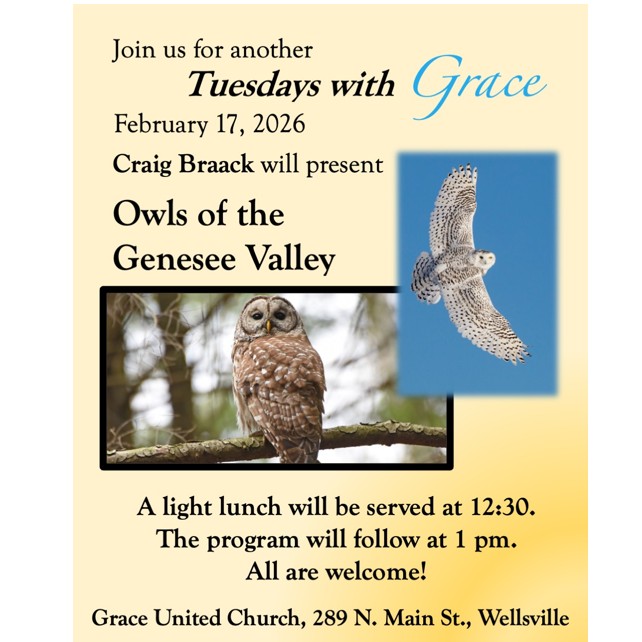 Craig Braack will provide a presentation on Owls of the Genesee Valley at the next Tuesdays With Grace. It is a timely presentation. According to Wildlife Rehabilitator, Susan Burlingame, she has recently received many calls and messages about Eastern Screech owls.