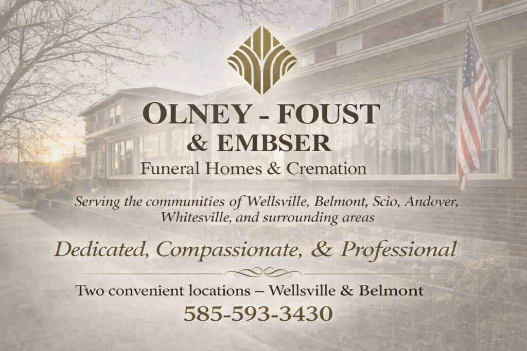 Arrangements are under the direction of Olney-Foust & Embser Funeral Homes & Cremation, 34 West State Street, Wellsville, NY. Online condolences may be expressed at www.wellsvillefuneralhome.com.
