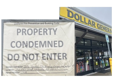 The Dollar General Store in Whitesville NY is now formally condemned and closed by the Town of Independence Cod Enforcement. The reason cited are shocking: No running water, no operating septic tank, and no working fire alarm. Being the main retail outlet for the small community makes this a very serious matter.