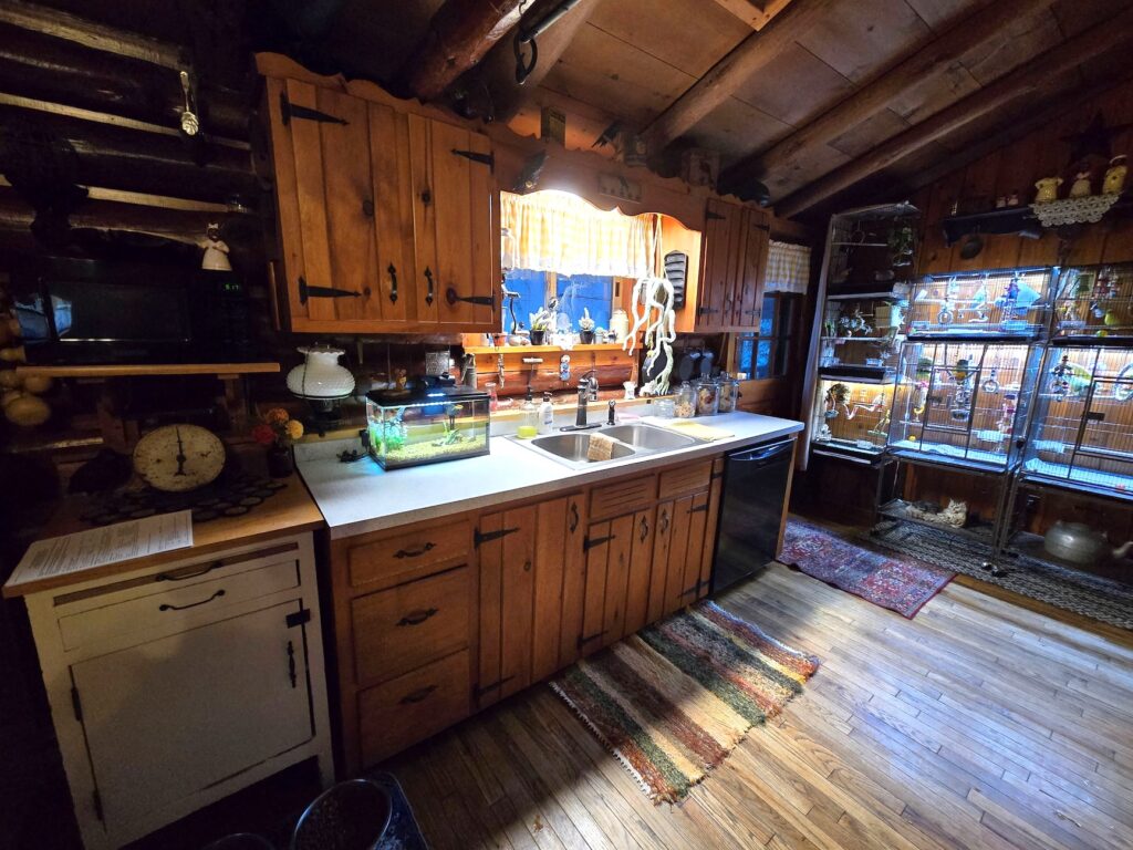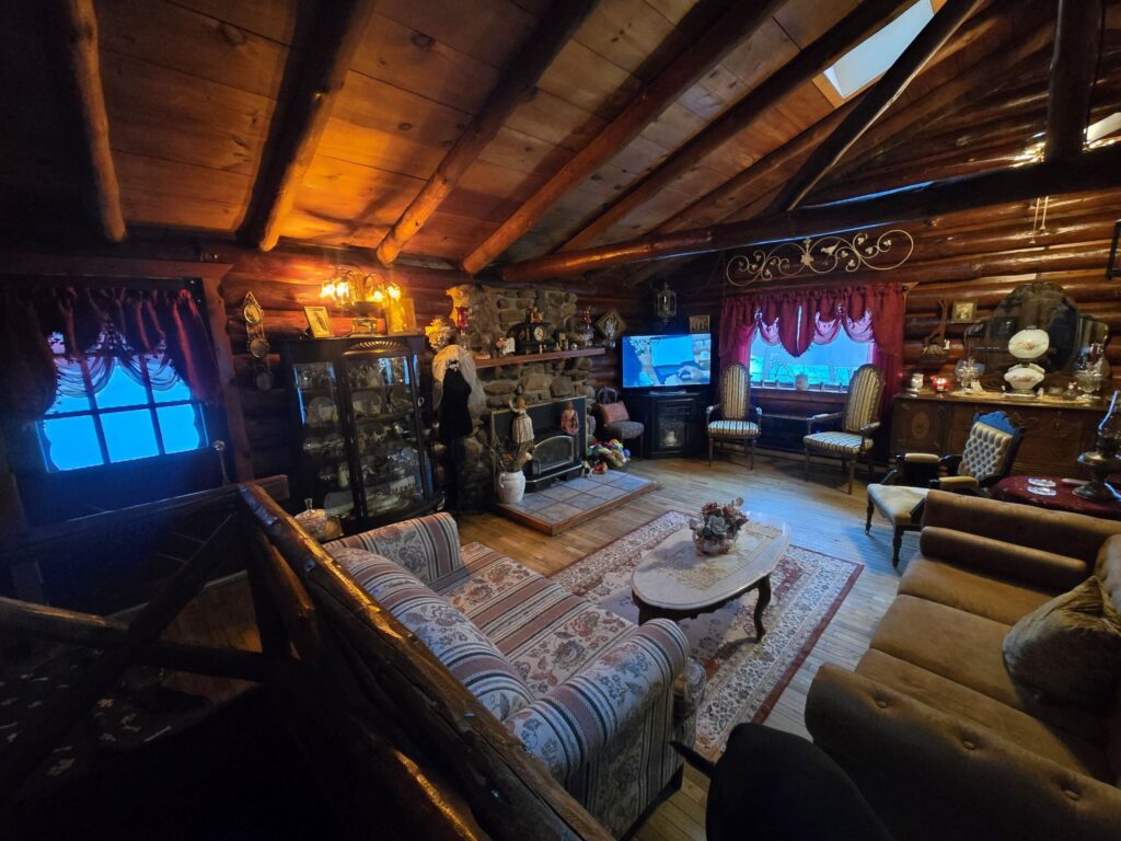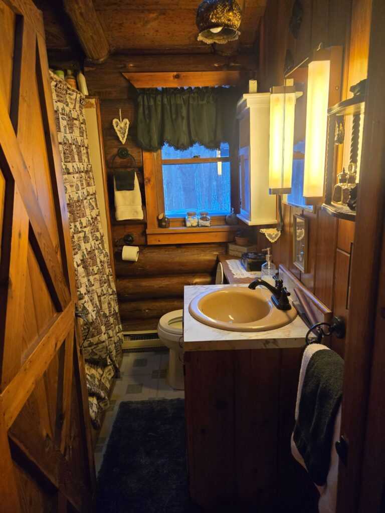 The home offers a usable fireplace and chimney for cozy evenings, along with an electric split heating system for efficient, optional heating. The interior blends a rustic charm with modern touches creating a welcoming and comfortable atmosphere.