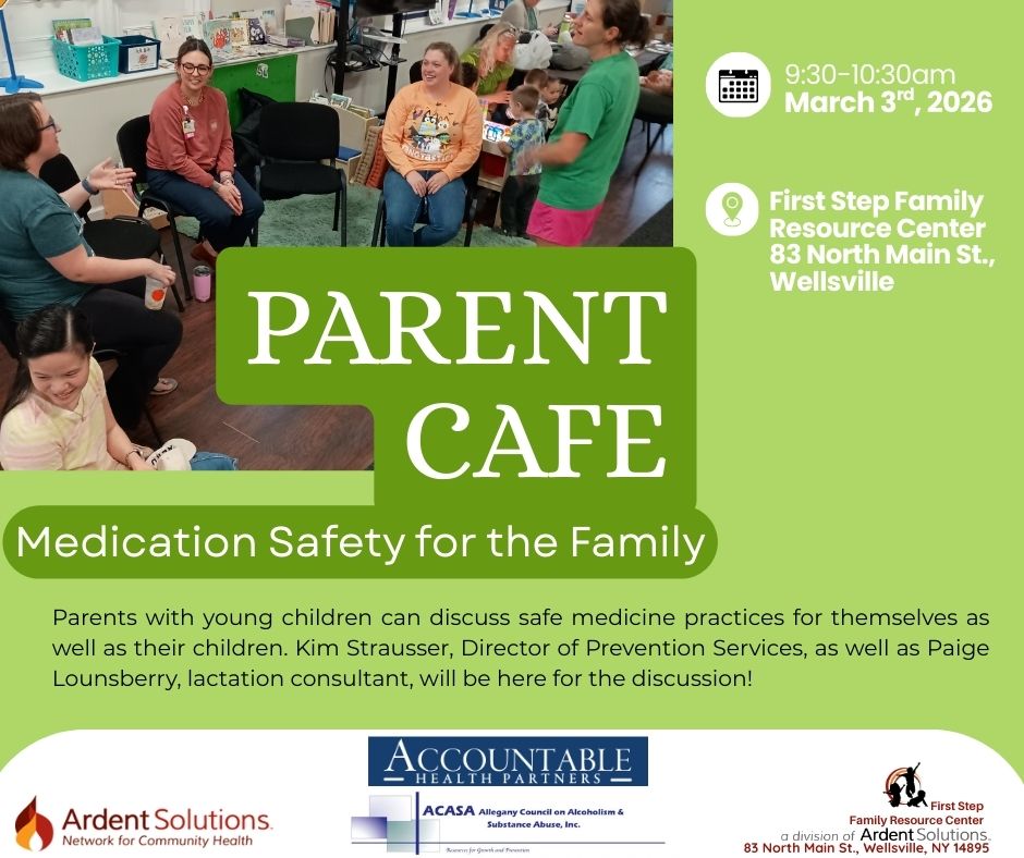 Don’t miss the “Parent’s Cafe” on Tuesday March 3 focused on medication safety