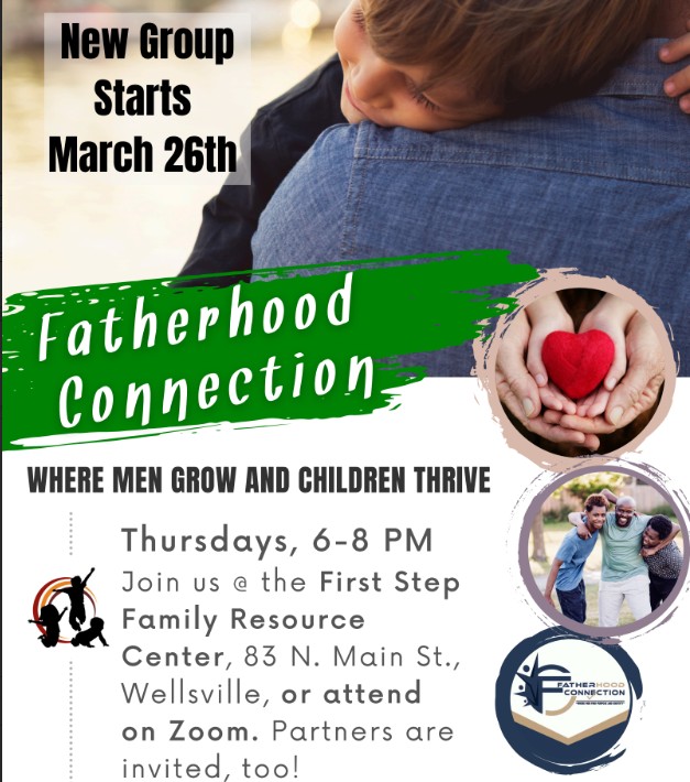 Thursdays | 6–8 PM | Online or In-Person at First Step Family Resource Center, 83 North Main Street, Wellsville, NY.