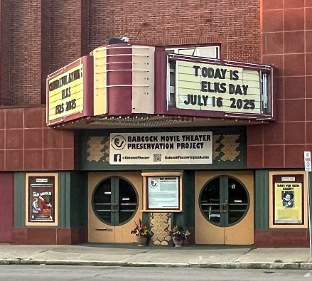 The Babcock Theatre Preservation Society is working to get the movie marquee updated as one of its first priorities because the marquee is one way the group has of raising money for the renovation. Funds from the marquee rental help to defray the cost of grant applications and minor repairs.