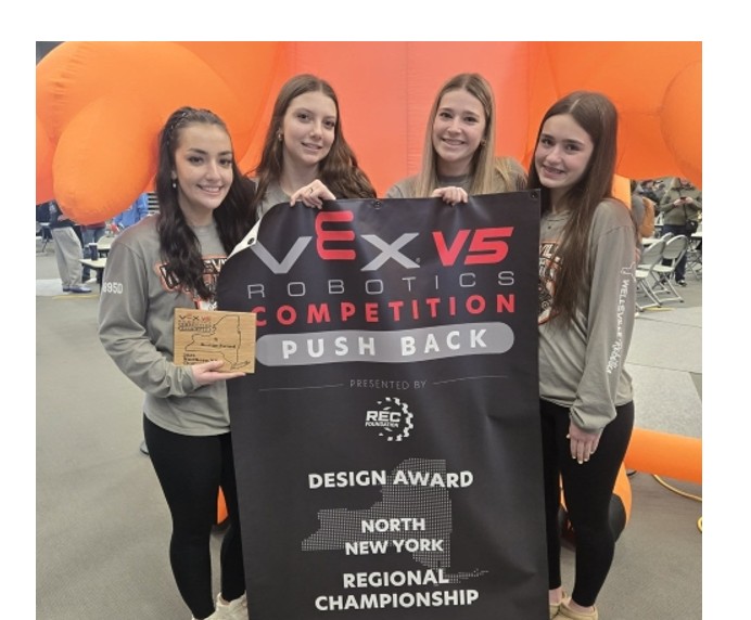 If you see the girls of Wellsville Robotics Team 14895, congratulate them on their performance in Wednesday’s NYS VEX V5 Championships in Syracuse! This group earned the title of NYS Champions in securing the Design Award, which earns them a bid to the VEX Robotics World Championships in St. Louis.