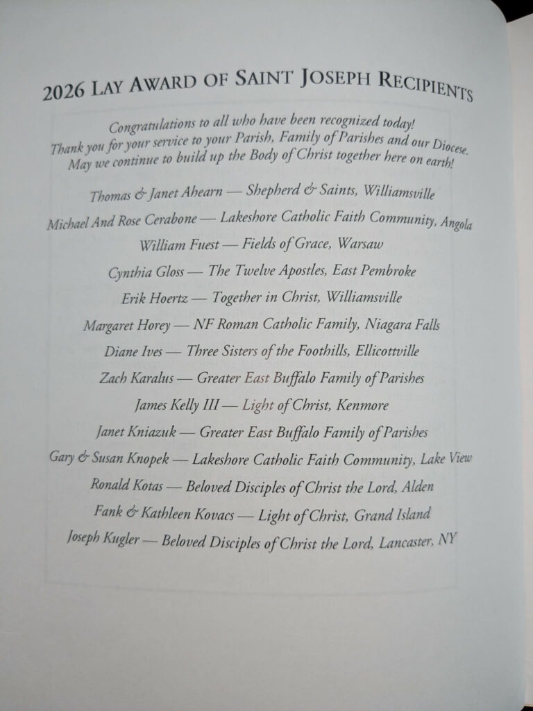 Two local residents were honored in Buffalo Saturday morning with the “Lay Award of Saint Joseph” at the Saint Joseph’s Cathedral.