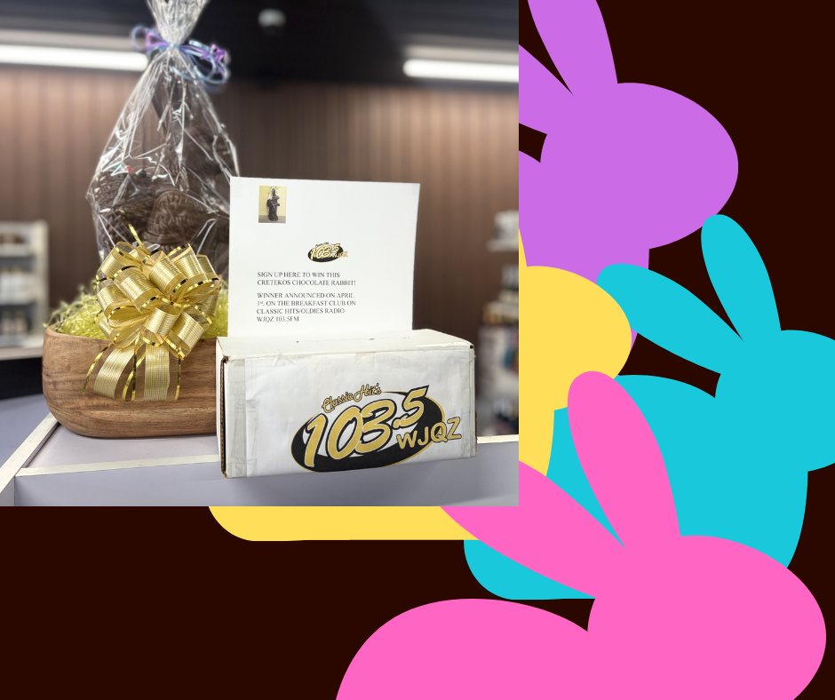We wanted to let you all know we are officially a part of the chocolate bunny raffle for the radio station 103.5 WJQZ classic hits!