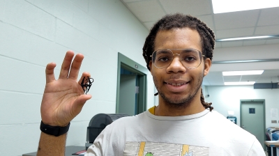Pictured: Mechatronics technology major Nehemiah Abelard-Johnson is benefiting from a scholarship he received from Alfred State