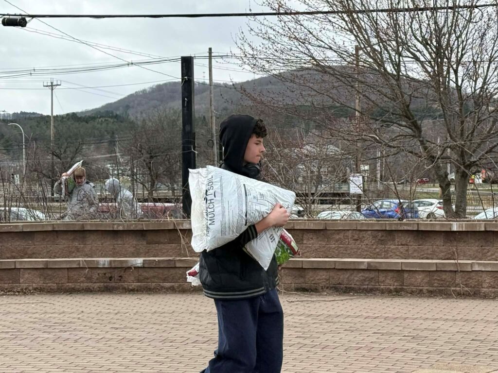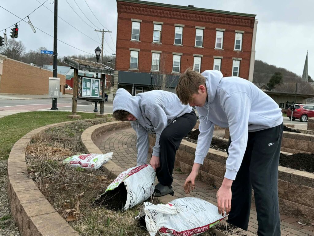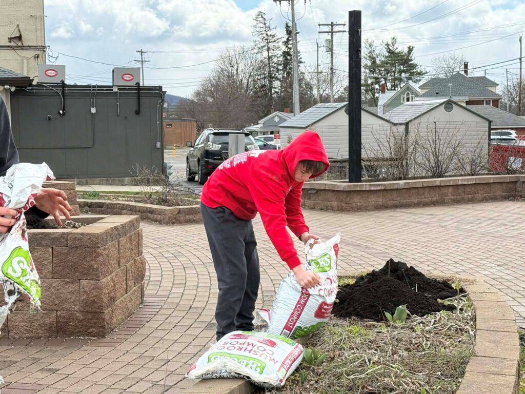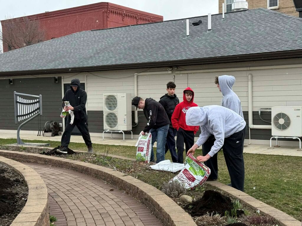 When Wellsville Varisty Boy Baseball coach John Anderson heard about over 4000 pounds of mushroom compost that needed to be moved into the garden beds he quipped, “I know who can help with that!!”