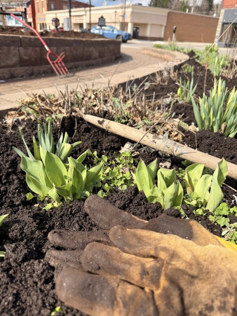 Yes you read that right, over four thousand pounds of mushroom compost arrived on Main Street Wellsville to feed that community gardens located at the Fassett Greenspace. Situationed on the corner of Main and Fassett, the greenspace has a series of raised beds that grow both flowers and food for the community. The flowers are for beauty(don’t pick please,) and the fruit and vegetables are for anyone in the community to harvest freely. Yes, one of the big missions of the garden is Free Food For the People!!