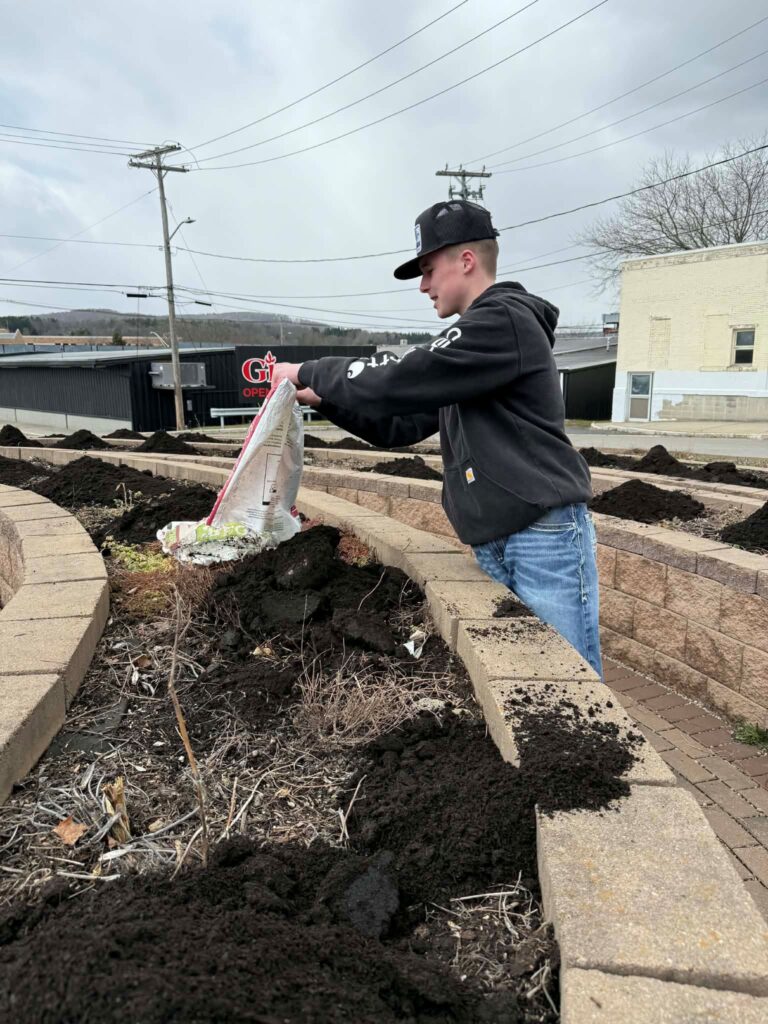 We took him up on his offer and then appeared eight strapping young ball players!! The top players of the JV Team showed up and brought the muscle!! Brayden Geffers, Ryker Johnson, Christopher Thompson, Christian Wenslow, Mason Cook, Noah Salmonson, Kniffen Cook and Clayton Loucks did some community service and in short order! The boys ripped through thousands of pounds of compost in under and hour !! Thanks to the Lions for putting the age old saying, “many hands make light work” into action!! Here is a slideshow of the boys in action: