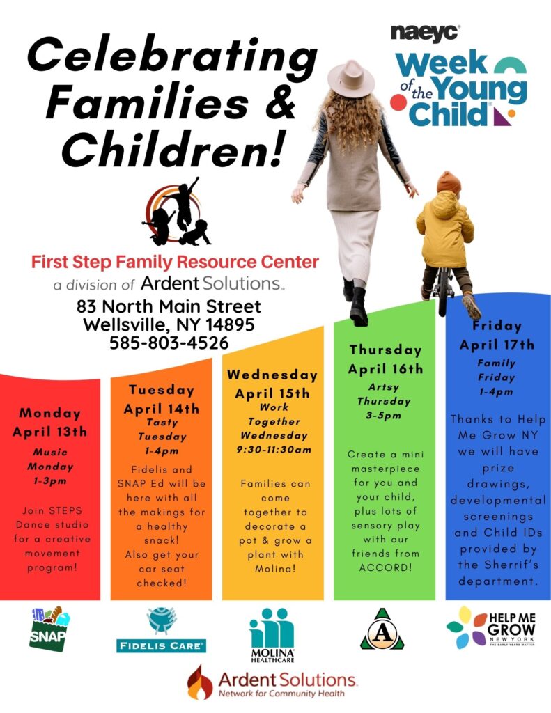 HEADS UP— April 13 – April 17 in “Week of the Young Child” in Wellsville!! The First Step Family Resource Center on Main Street has lots planned, Follow them on Facebook to connect!