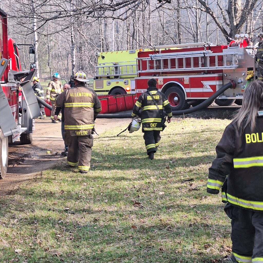 Yesterday at 09:19 (9:19 a.m.), we were dispatched to our first fire for mutual aid to Richburg in the town of Wirt. Our Chief-50 responded and arrived first on scene due to proximity and reported a fully involved single story structure. Bolivar 1 and 7 responded with limited crews due to the time of day on a weekday along with 1st Asst. Chief-501. Allentown 7 and Richburg 7 arrived first providing initial attack, with Allentown 1’s and Bolivar 1’s crews providing scene upport. Mutual aid from Clarksville and Friendship provided water supply and tanker shuttle along with Bolivar 7. All units were back in service at approximately 13:30 (1:30 p.m.) Thank you to everyone that assisted on scene!