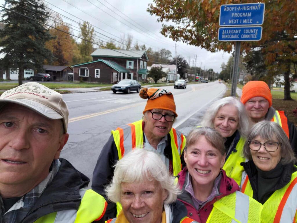 ALMOND, NY — Since 2021, the Allegany County Democratic Committee has cleaned up a section of State Rt. 21 in Almond, NY as part of the NYS Department of Transportation’s “Adopt-a-Highway” program.  This project is just one of the many ways local Democrats serve our community.