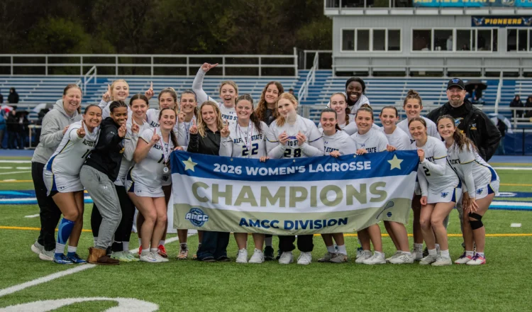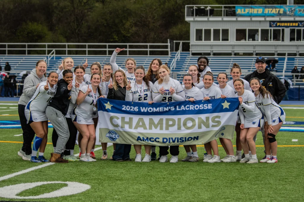 The Alfred State women’s lacrosse team claimed the AMCC Championship in convincing fashion as they took down Pitt-Bradford 16-3 on Saturday. The Pioneers move to 12-4 on the year and will face St. Mary’s College of Maryland in the AMCC x United East Crossover Championship game next Saturday (5/2).