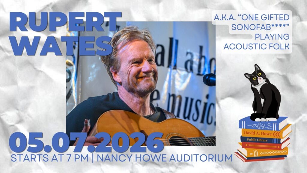On Thursday, May 7, at 7 p.m., Rupert Wates, a London-born songwriter, will present his unique blend of acoustic folk infused with elements of jazz, vaudeville, and cabaret. Wates has released twelve solo albums, each earning critical acclaim and international airplay. His songs have been covered by artists across the UK, Canada, and the U.S. Though British by birth, Wates has been hailed as “a prime figure in American music” by Folk and Acoustic Music Exchange, who praised him as “one gifted sonofabitch.” Audiences everywhere respond to the haunting, melodic quality of his songs—music that rings true.